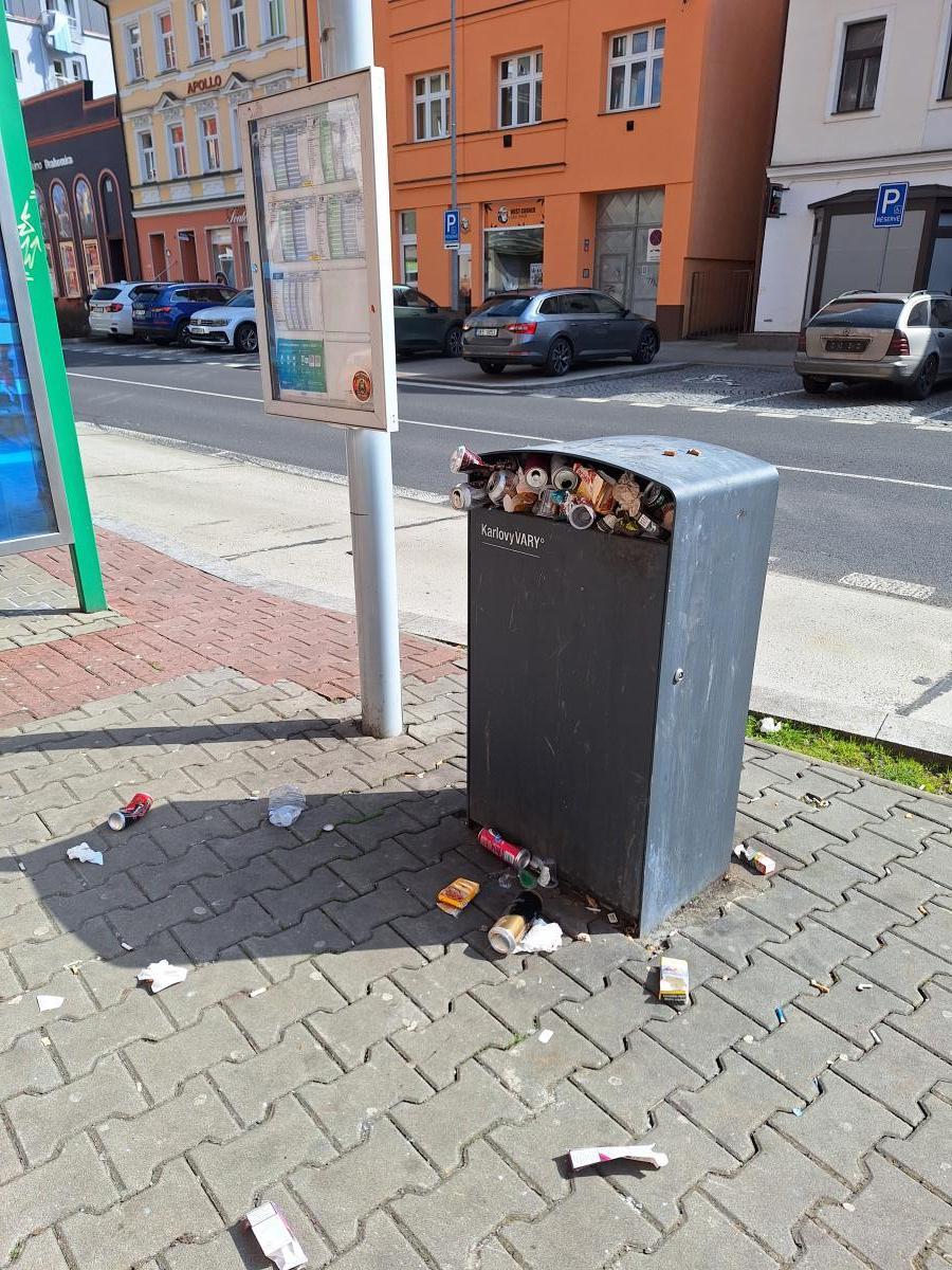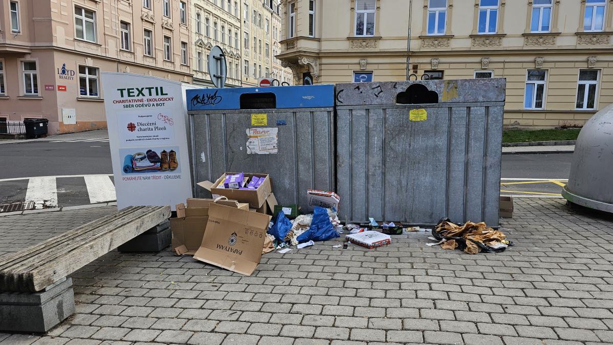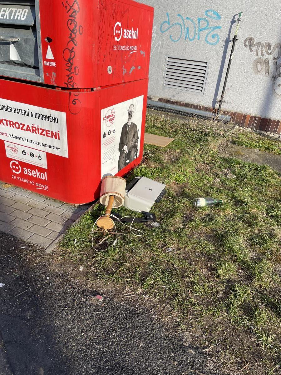 Kontejnery na tříděný odpad jdou plné a kolem je také nepořádek. Děkuji.
