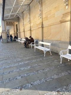 Opakovaně upozorňuji na žebrající osoby na kolonádě. Obtěžují návštěvníky,obyvatele. MP KV to neřeší. Jsou to neustále ti samí lidé. foto ne 17:30