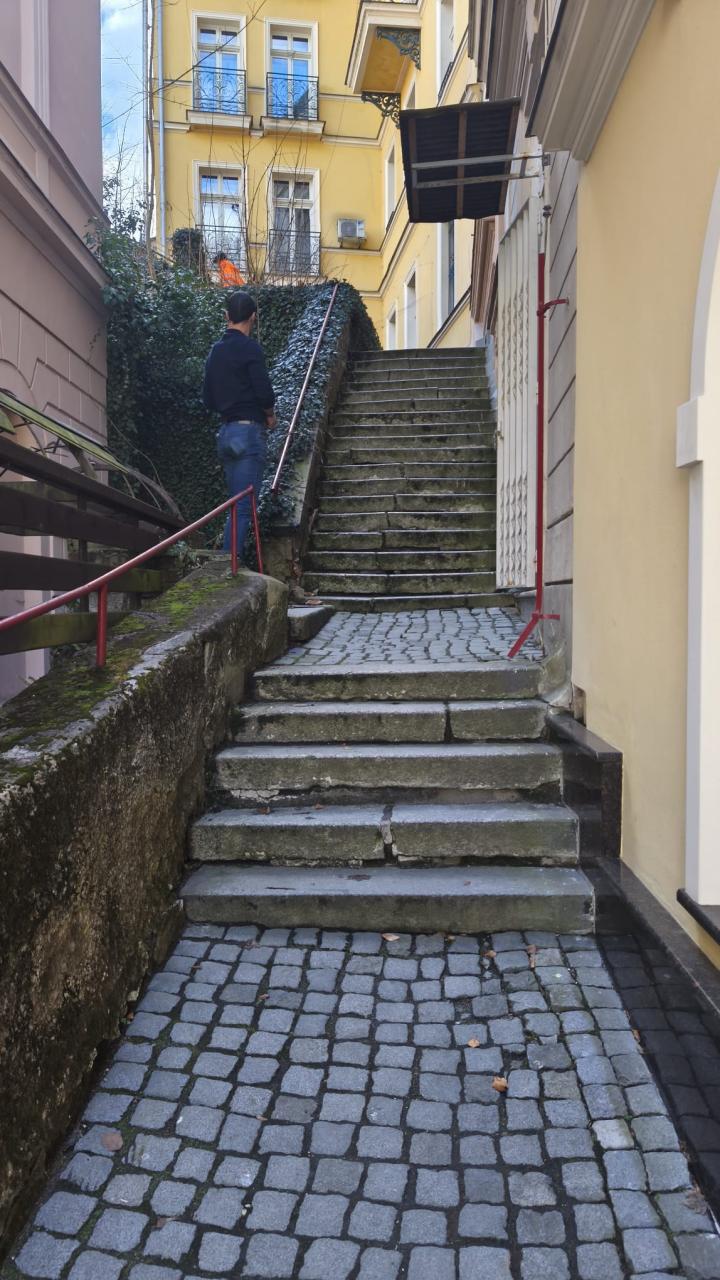 Dnes proběhl úklid schodiště z Husova náměstí. Úklid na tomto schodišti neprobíhal od 1. 10. 2025 z důvodu zimní údržby, která trvá v období od 1. 10. 2025 do 31. 3. 2026. Schodiště je na tuto skutečnost označeno cedulí, která upozorňuje, že v tomto období zde neprobíhá údržba. Přesto bylo schodiště dnes uklizeno.
