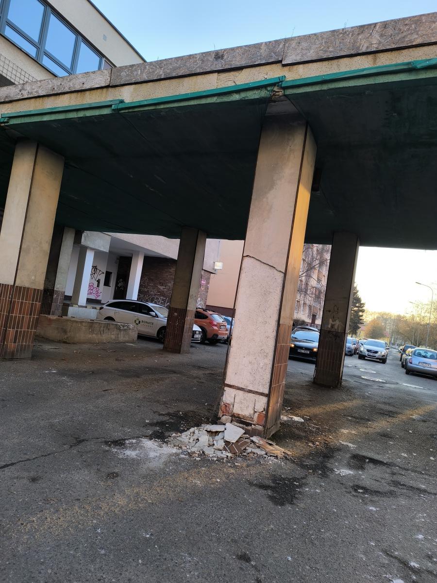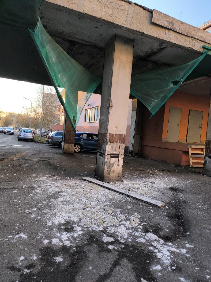 Dobrý den, lávka spojující bývalé obchodní centrum s knihovnou se stává nebezpečnou. Padají z ní velké kusy betonu.