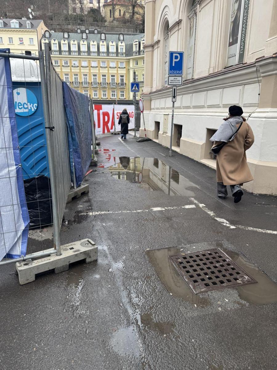Rada bych upozornila na prostor, který vzniká zatarasením, kvůli stavbě Láz. mostu. Zde se drží velká louže a lázeňští hosté nemají kudy jít.