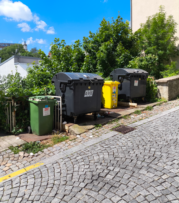 Na celém Růžovén vrchu nejsou celý týden vyvezené zelené odpadkové koše. Jejich obsah přetéká ven, nemluvě o zápachu, který se z nich line.