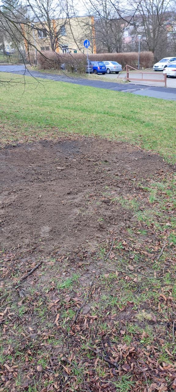Dobrý den, zničený okraj trávníku byl opraven a znečištěný chodník uklizen.