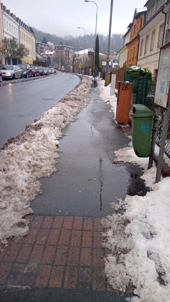 Moc prosím o protažení silnice v ulici Mozartova 8 - Karlovy Vary. Při zmrznutí nánosu sněhu hrozí kolize aut a lidí. Děkuji za vstřícnost.