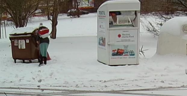 Černá skládka ve dvoře I.P.Pavlova 25, J.Palacha před kontejnerem na tříděný vedle výměníku a indické restaurace.