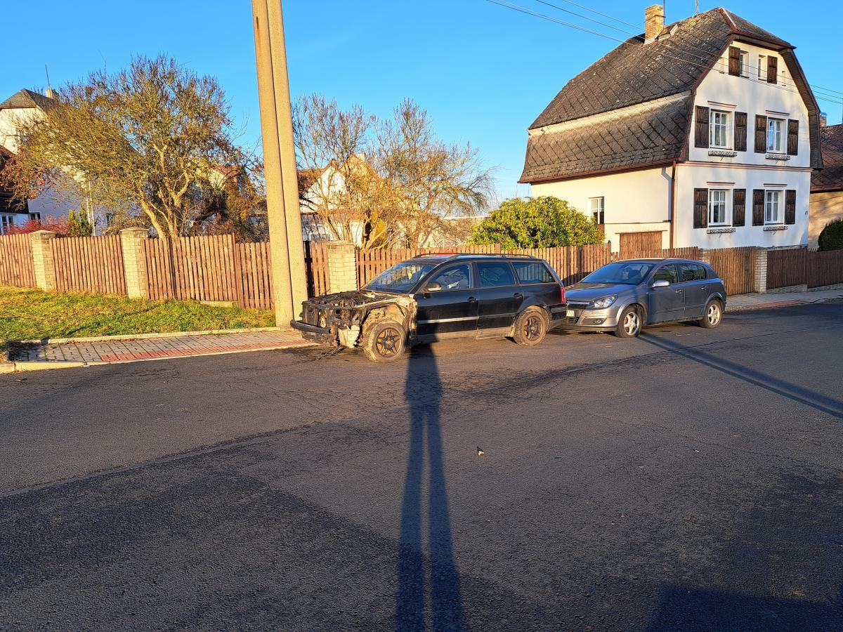 V Tašovicích na křižovatce v Sopečné ul., poblíž dětského hřiště stojí 2 vraky. Jeden z vraků je bez kapoty, a dochází k úniku provozních kapalin.
