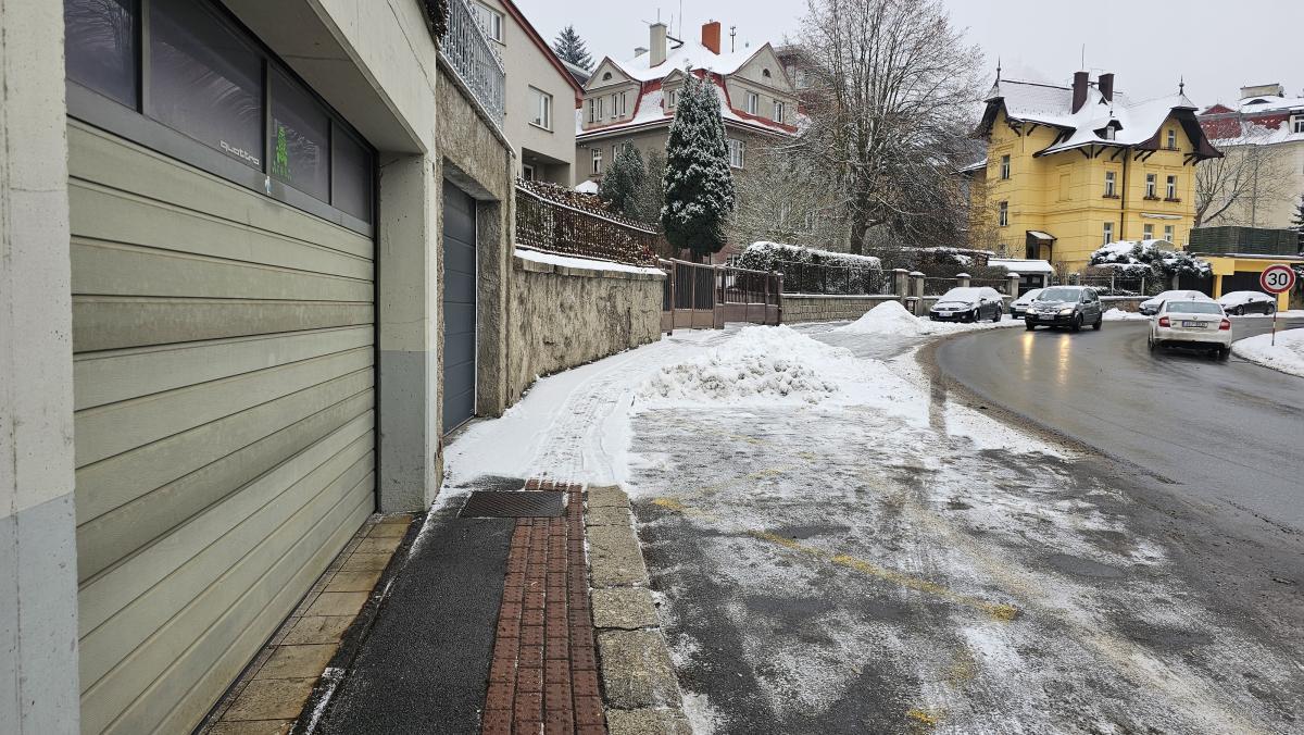 Při provádění zimní údržby v ulici Na Vyhlídce vzniká problém při hrnutí sněhu na komunikaci. Při tak vydatném sněžení, jaké bylo v uplynulých dnech, a zároveň při celodenních minusových teplotách je sníh shrnován ke krajnici vozovky a velké množství sněhu je nahrnuto také na chodník. Na chodník se dostává značné množství sněhu, protože je nedílnou součástí komunikace. Sníh je následně udusán v několika vrstvách. Do toho byla vydána výstraha ČHMÚ na ledovku, která se následně skutečně vytvořila. Celková udusaná masa sněhu byla navíc pokryta ledovou vrstvou. Není v našich silách tuto masu odstranit během několika hodin, stejně tak není v možnostech techniky ji kompletně odplužit, navíc není kam sníh odhrnout. Během výjezdu byl chodník několikrát ošetřen, avšak ne do stavu, aby byl viditelný asfaltový podklad – tento proces vyžaduje čas. Včera byl chodník částečně znovu odházen a posypán solí, totéž proběhlo i dnes. Podotýkám, že naším úkolem je zmírňovat následky zimy, nikoliv je zcela eliminovat. Práce na chodnících v ulici Na Vyhlídce budou pokračovat i zítra.