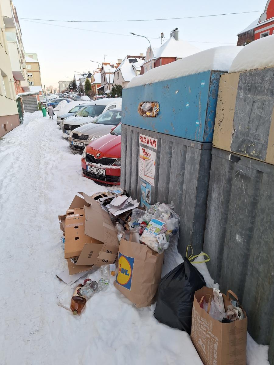 už přes týden nám nebyly vyprázdněny kontejnery na plasty a papíry na ulici Požární u parkoviště a vše se už hromadí na zemi. Děkujeme