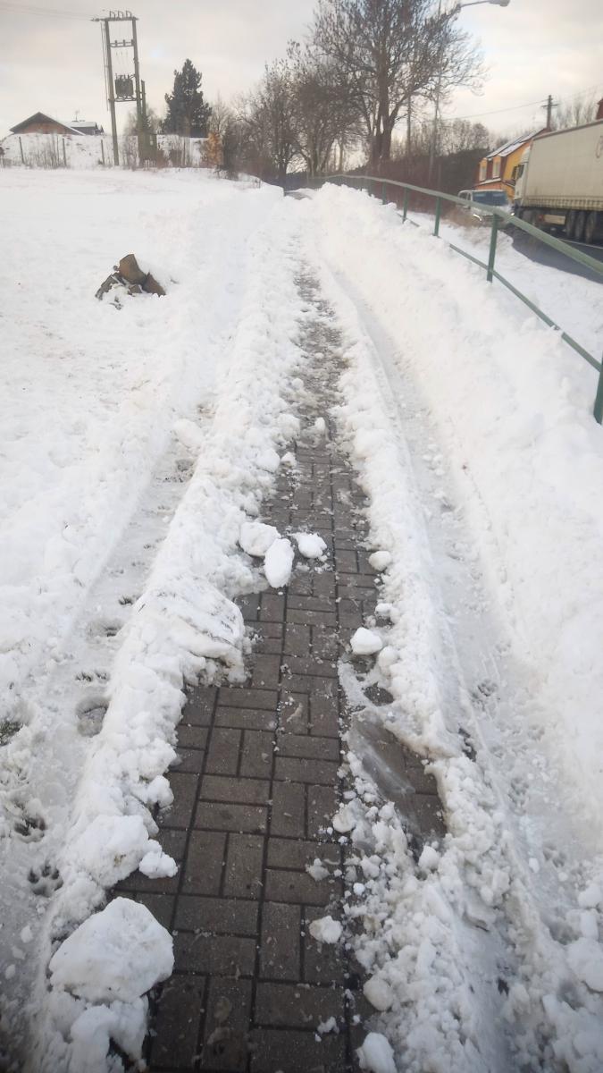 Z příspěvku 49/ 2026 stav podle forografií nezměněn, ráno chodníky neschůdné, odpoledne stále