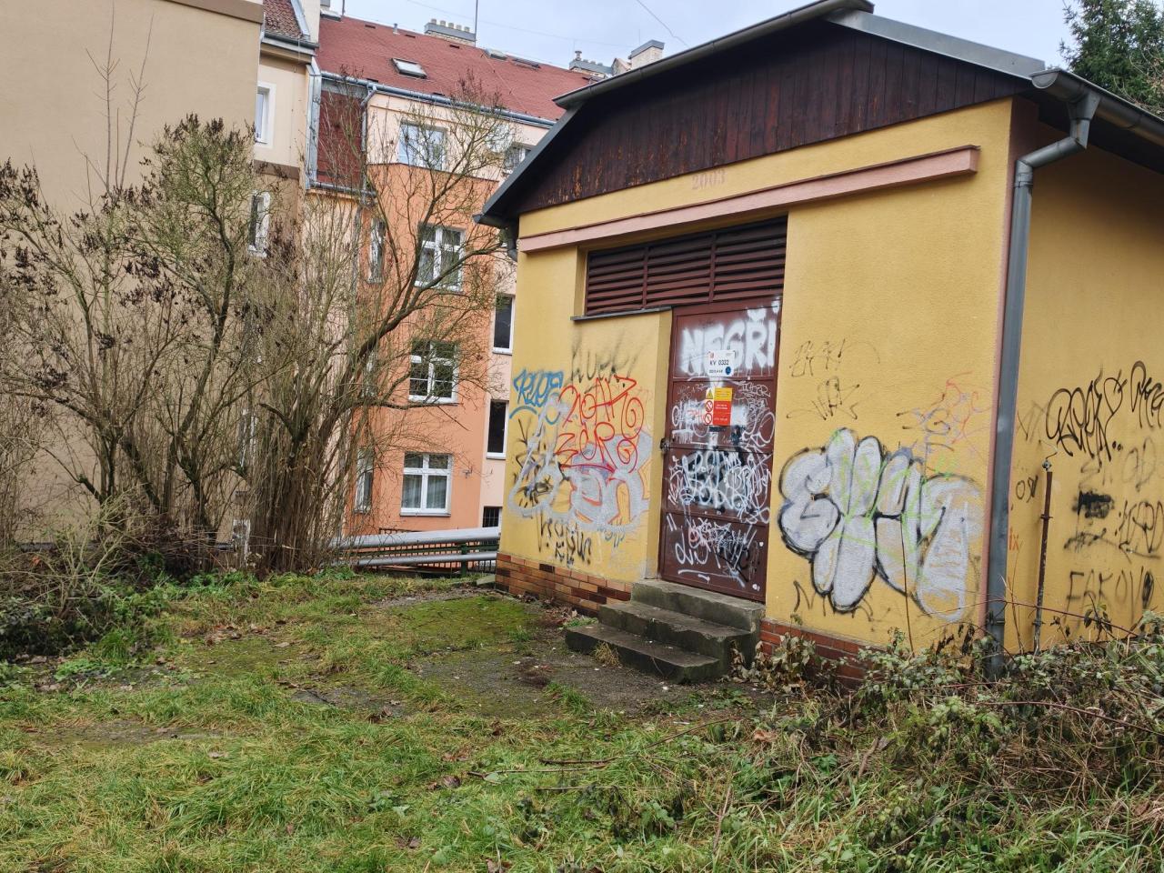 Posprejované zdi obchodni akademie.