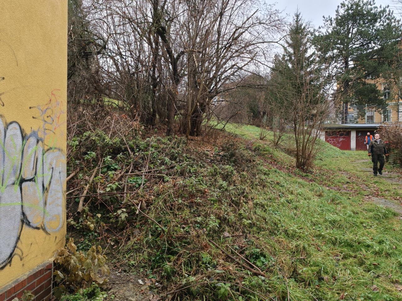 Stále není protažen a ošetřen chodník podél komunikace z Partyzánské do Horní ulice.
