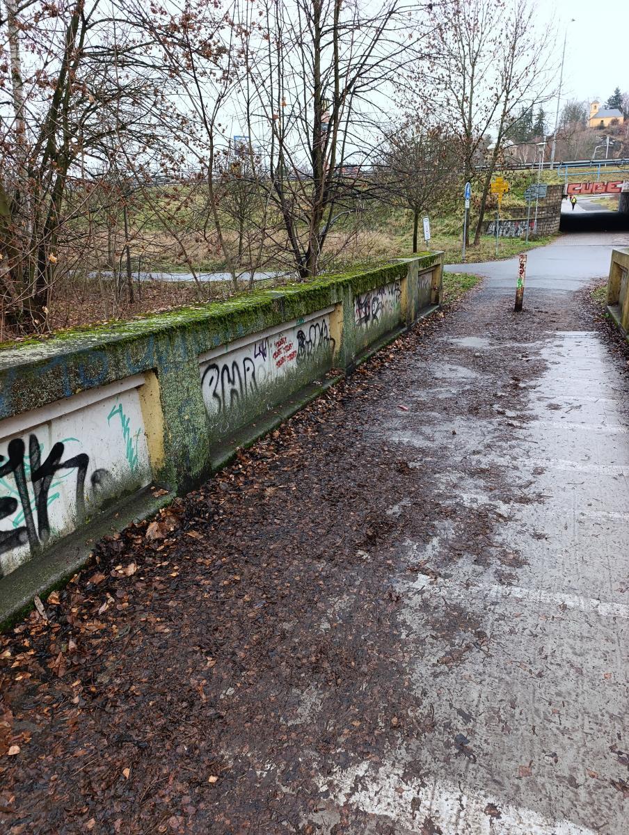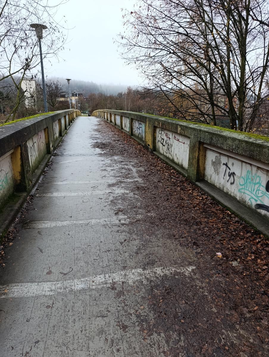 Dobrý den, bylo by možné uklidit listí na lávce mezi obchodem Lidl a Tuhnicemi? Klouže to.