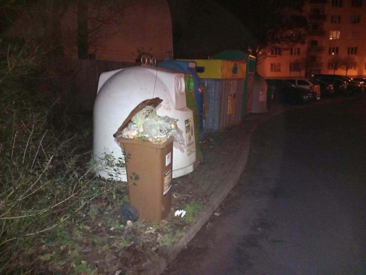 Takto vypadá kontejner na bio odpad od obyvatel sídliště. Byla by vhodná asi lepší edukace, protože pak to evidentně postrádá smysl.