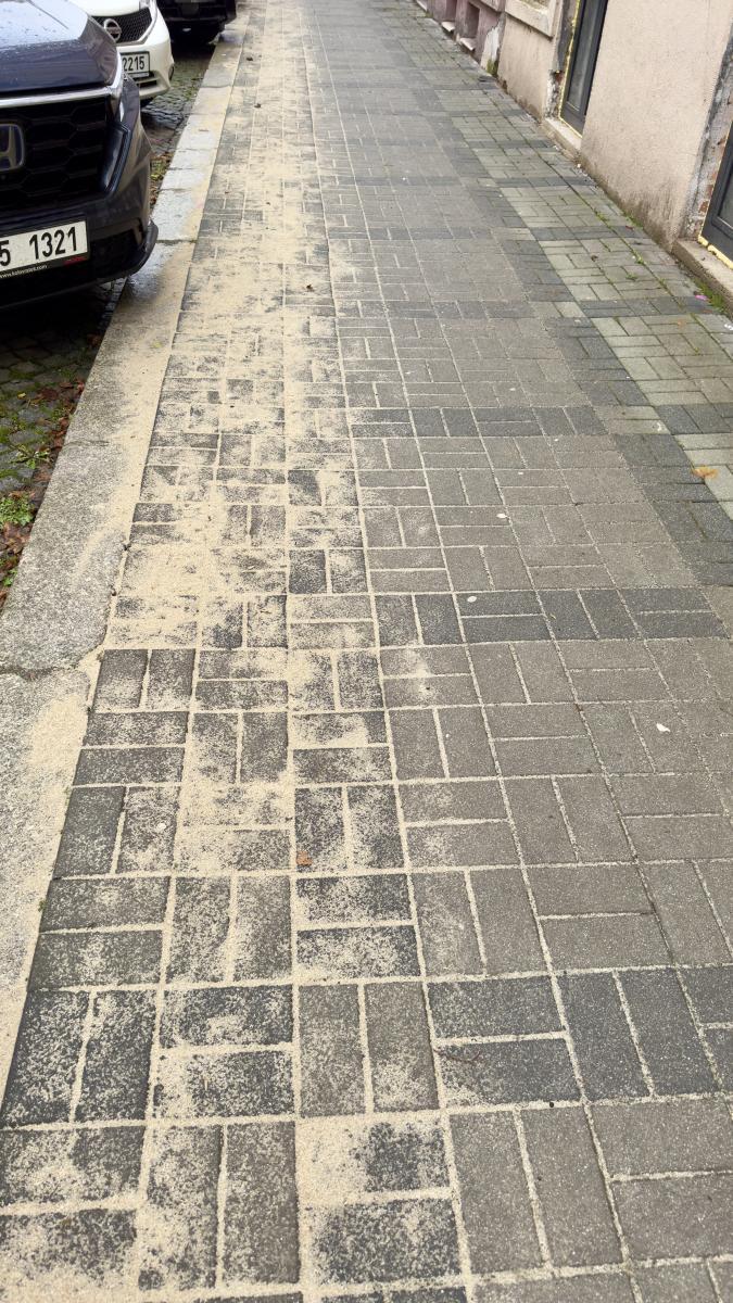 Dobrý denk, přes víkend byly chodníky zametené a odložená dlažba odvezena.