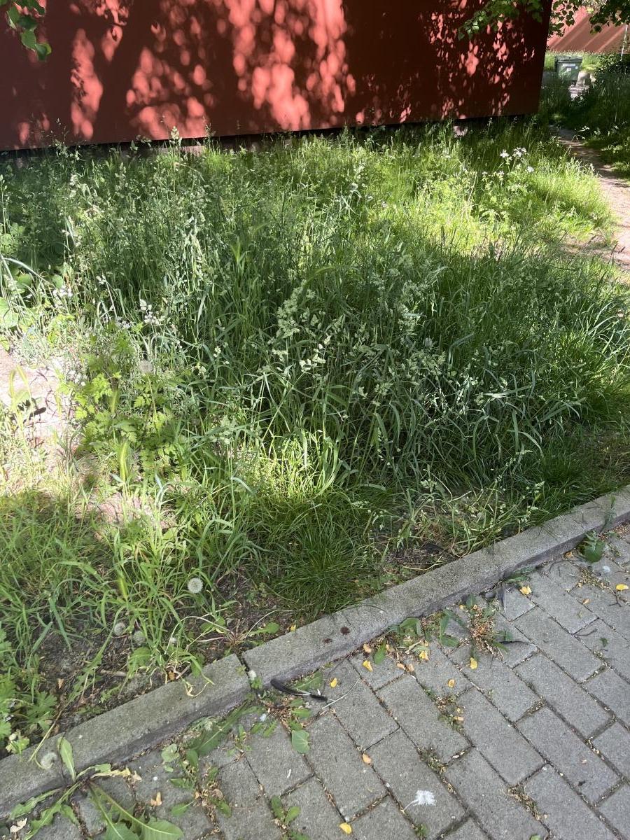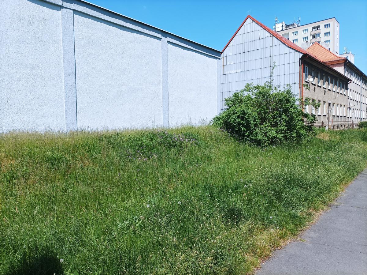 Opět neposekaný trávník u štítu domu v Boženy Němcové 456/17. Ostatní plochy jsou v okolí posekané. Opakuje se skoro každý rok. Pokud se nepodaří sekáče chytit, je to v posledních cca 10 letech stále stejné až na 1 případ kdy to nepřehlédli.