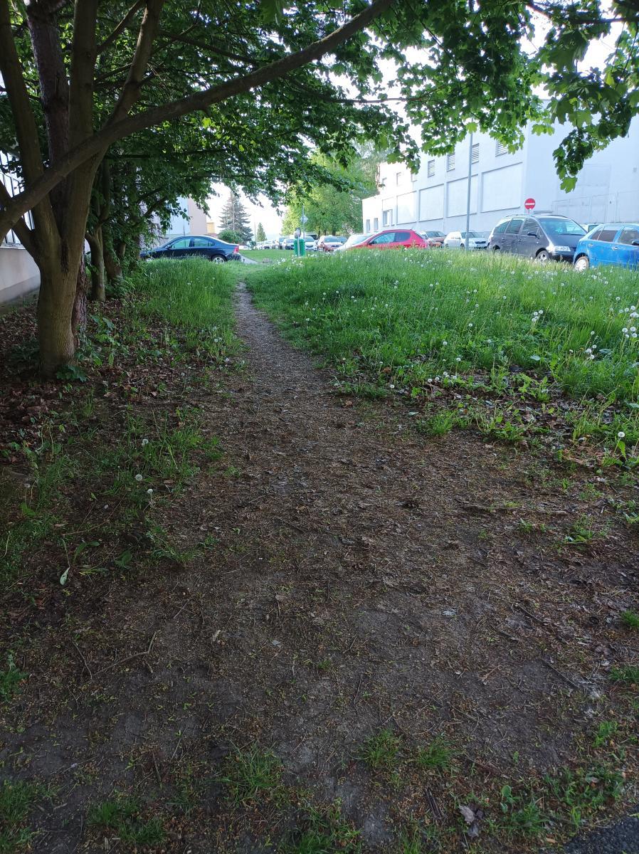 Prosim o posekaní trávy, ktera zasahuje do chodniku, Děkuji