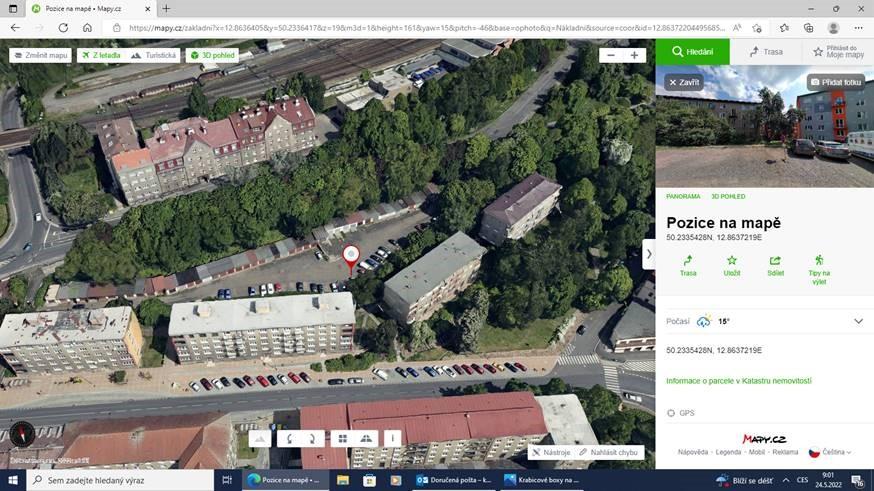 Dne 20.5. 2022 v 17 hodin jsem zjistil, že před vstupní brankou do objektu Chebská 12, Karlovy Vary je položená betonová kostka o rozměrech 50 x 50 cm. Prosím o vyřešení této záležitosti, neboť tato kostka ohrožuje bezpečnost chodců, ale také bezpečnost vozidel při parkování. Dvořák