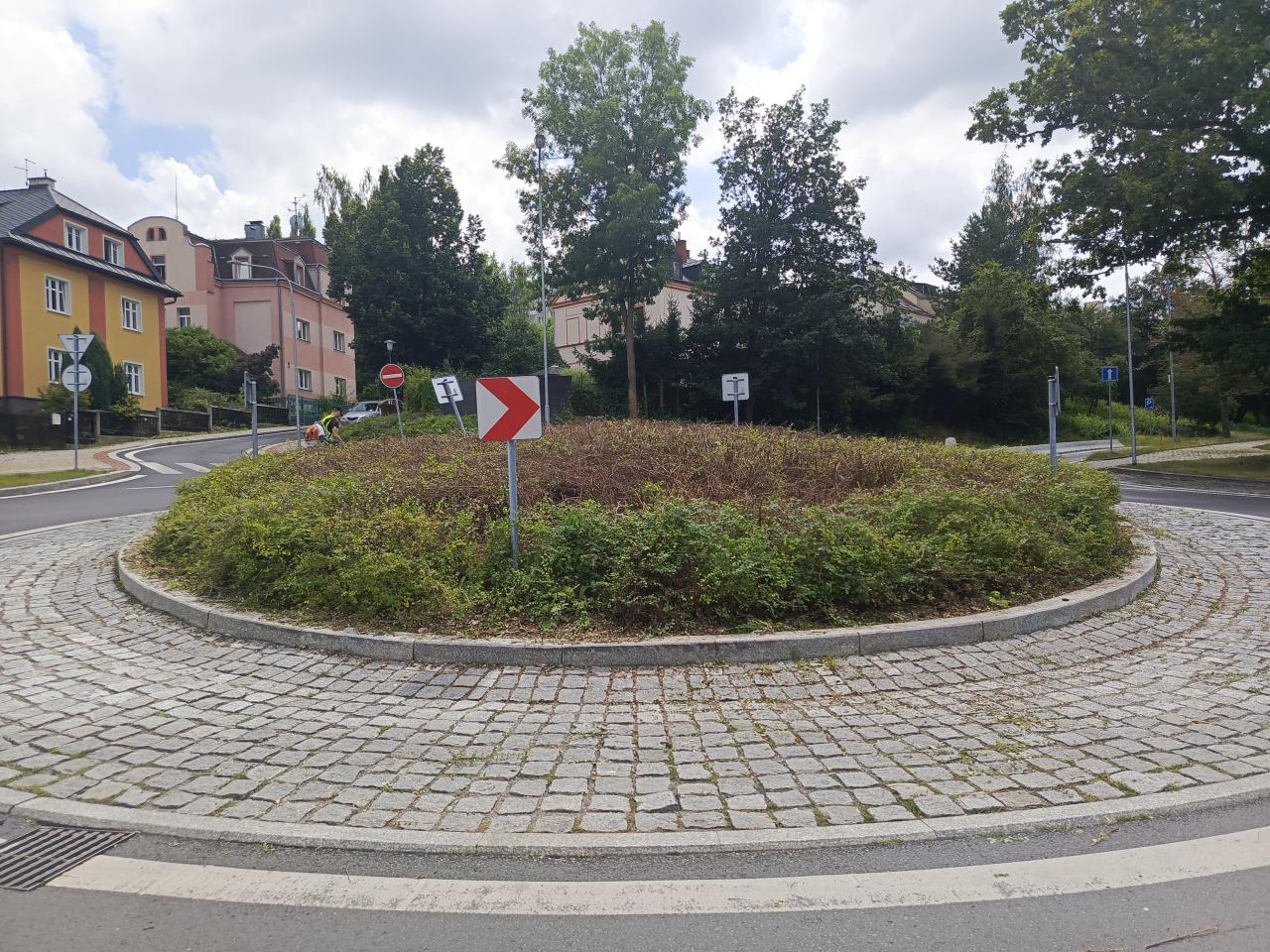 Prosíme do začátku školního roku ostříhat keře v kruhovém objezdu - do šířky i výšky - zlepší to výhled, a výhledově by žáky školy určitě potěšil vhodný dřevený prvek uprostřed jako v jiných částech města, děkujeme