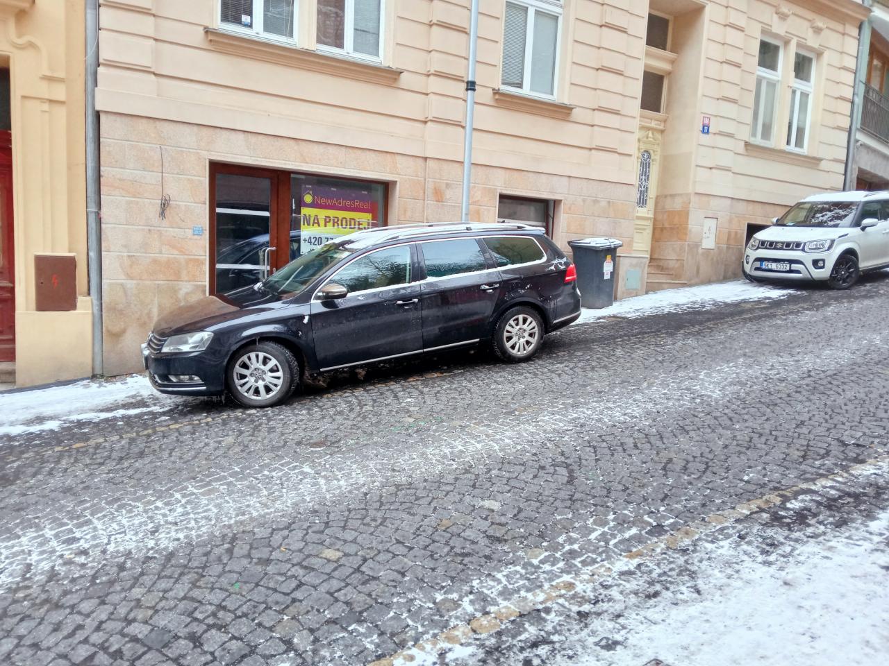 Dále parkování v celé ulici. Z ulice se stává odstavná plocha kohokoliv. Není skoro možno ulicí projet, není se kdy vyhýbat. Další problém je, že dotčení jedinci parkují proti vjezdům na pozemky a omezují tím pádem bezpečný výjezd. Především od té doby, kdy je chodník v dezolátním stavu.